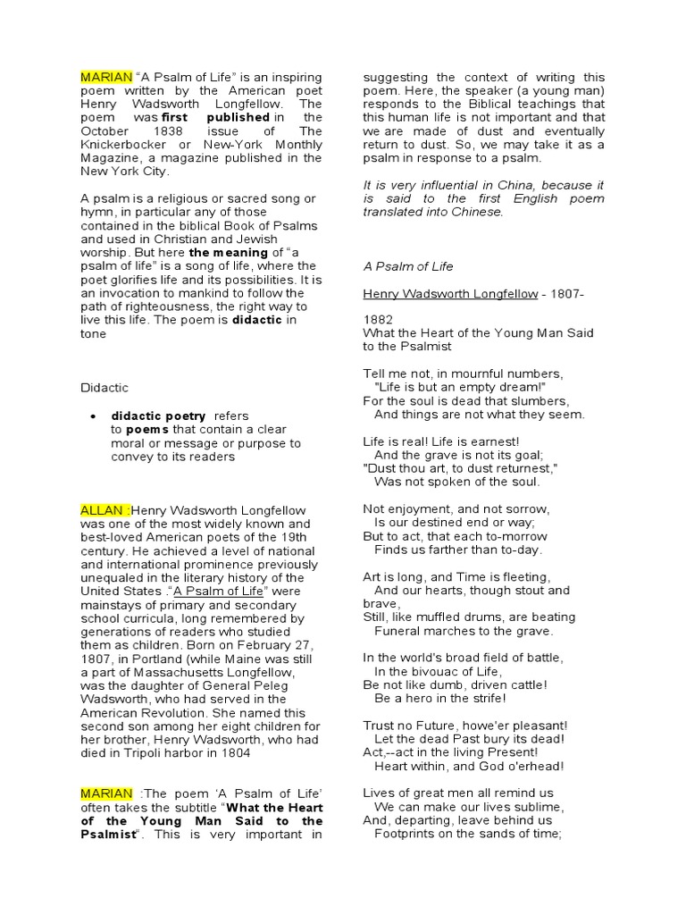 A psalm of life poem pdf Kamis 03 November 2022 Lives of great men all remind us. Up to 3 cash back a psalm of life - Free download as Word Doc doc PDF File pdf Text File txt or read online for free. The STANDS4 Network.
